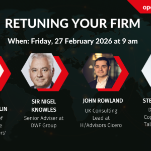 Join us for the 110th episode of the ‘Re-tuning your Firm’ live show on Friday, 27 February 2026, at 9am. This 45-minute public webinar is open to all and free to attend. Hosted by Richard Chaplin, Founder and Chief Executive of the Managing Partners’ Forum, this session brings together expert insight on the political landscape, […]