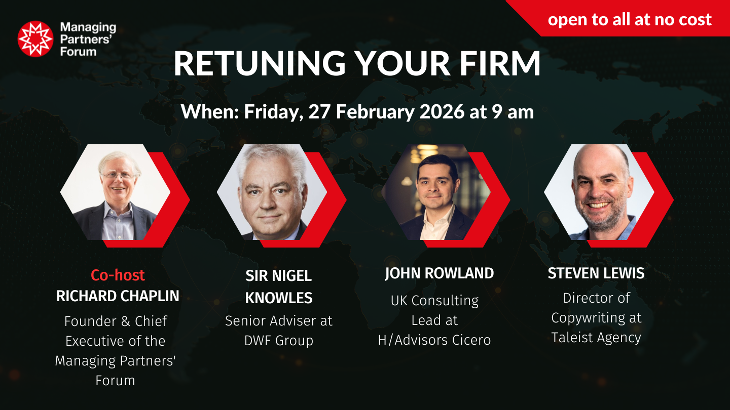 Hosted by Richard Chaplin, Founder and Chief Executive of the Managing Partners’ Forum, this session brings together expert insight on the political landscape, sector trends, and the leadership questions shaping professional services firms.